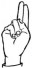 На ћирилици написано МИЛИН КРИВЧЕВИЋ састоји се из 14 слова [?]. Исписано ћириличном једноручном азбуком за глувонеме: